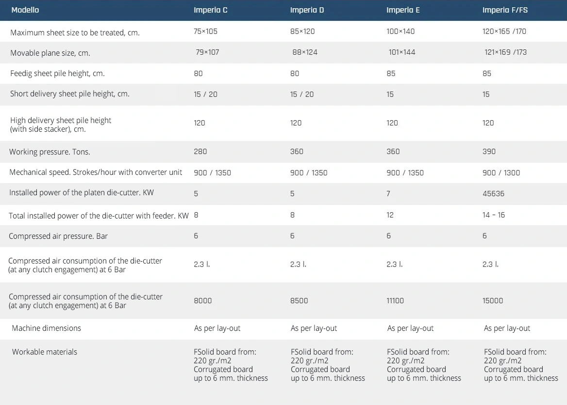 Imperia, with automatic feeder/delivery unit is available in the sizes: